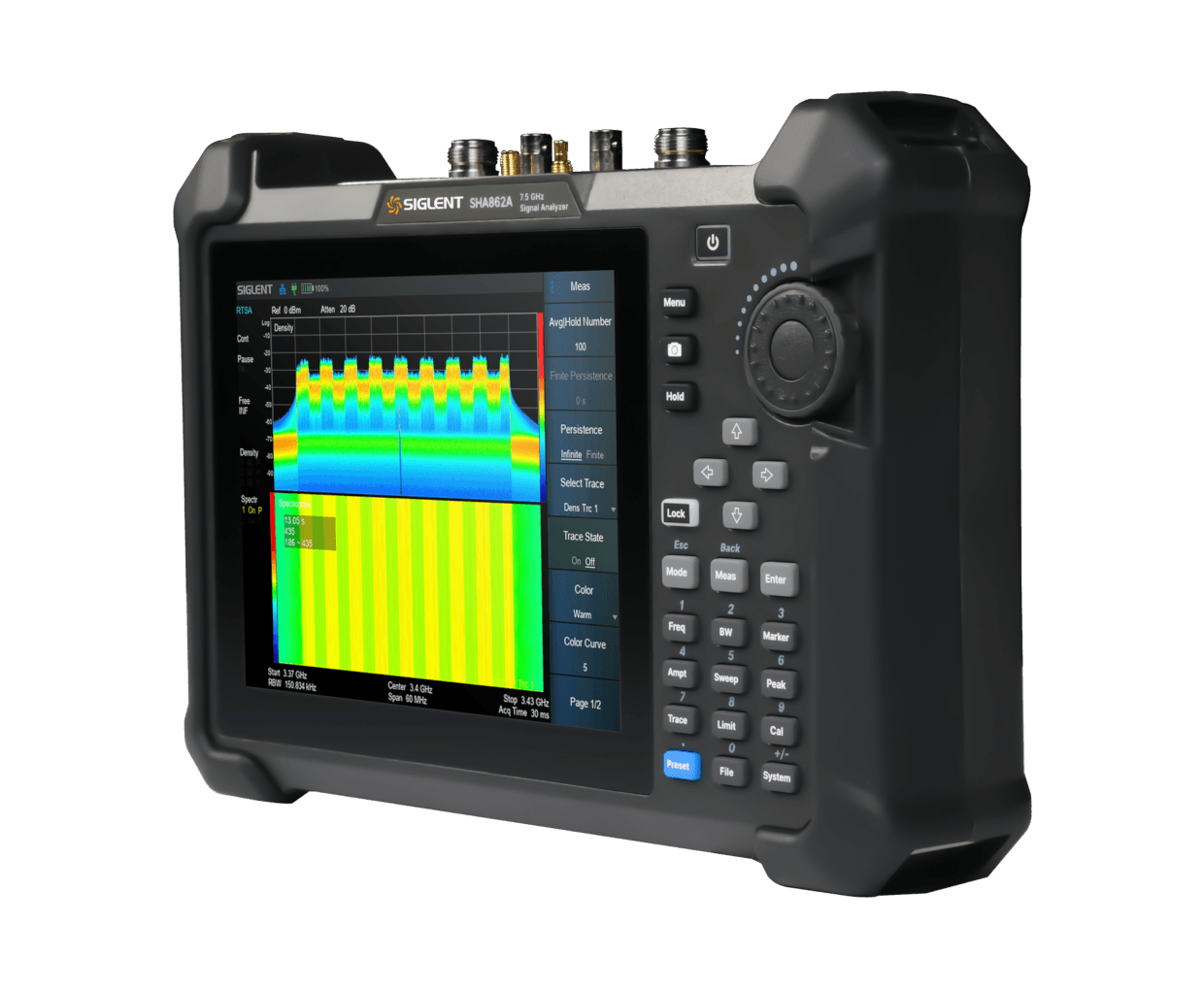 Siglent SHA860A series, a next-generation handheld signal analyzer, integrates spectrum analysis, vector network analysis, and cable/antenna testing into a single portable platform, offering a comprehensive solution for 5G/LTE base station deployment and maintenance. Supporting a 9 kHz to 7.5 GHz frequency range and 110 MHz real-time bandwidth, it features advanced capabilities like 5G NR/LTE OTA testing, real-time spectrum analysis, pulse profile analysis, and GPS-synchronized indoor/outdoor mapping. This empowers technicians to optimize beam performance, troubleshoot interference, and accelerate network deployment with precision, while its integrated design enhances on-site testing efficiency and portability.