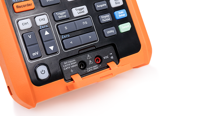 SHS1000X series features full isolation between the two oscilloscope channels, one multimeter channel, power adapter and the USB host/device port. The full isolation makes it ideal for both laboratory and floating signal measurement because it reduces the risk of accidental short circuits.