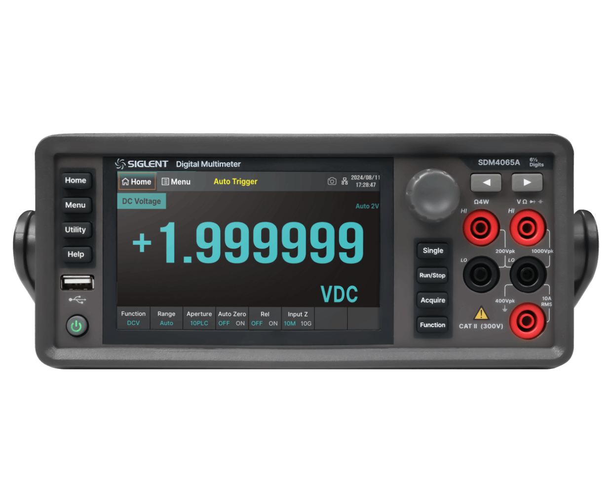 SDM4065A系列是鼎阳科技的旗舰级数字万用表,提供6½位高精度,最大读数速率高达50,000次/秒,确保快速准确的测量。内置热电偶冷端补偿,支持多种数据可视化功能如直方图、趋势图等,方便用户直观分析数据。标配USB Device、USB Host和LAN接口,支持远程控制和数据传输。其2Gb大容量存储,能够保存大量测量数据和设置文件,是专业工程师和科研人员的理想选择。