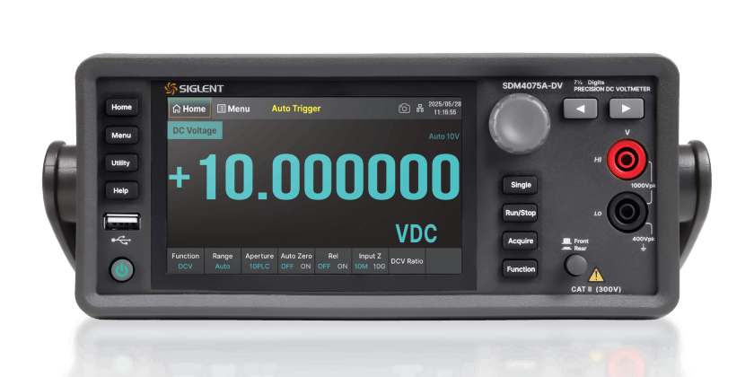此次推出的SDM4075A-DV七位半高精度数字电压表,专为以电压测量为核心需求的应用场景打造。SDM4075A-DV聚焦直流电压测量功能,简化了操作流程,可有效规避使用复杂功能导致的误操作风险,提升产线测试效率。七位半分辨率下可精准捕捉微弱的电压信号,最大限度降低测量回路对被测电路的影响。产品可适用精密半导体器件测试、电源与电力电子设备性能验证、工业长期在线监测等对电压测量有高要求的应用场景。在保障高精度测量能力的同时,还能拥有更优的采购成本优势,减少项目整体硬件的投入。
